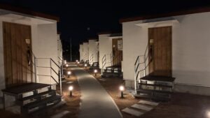 本番前日、ePARA社員のNAOYAと細貝は、つくば市内のゲーミングホテル「HOTEL VILLA THE RooM」に前泊。ひと部屋ひと部屋が独立したコテージタイプの宿で、非日常のゲーミング空間を体験しました。